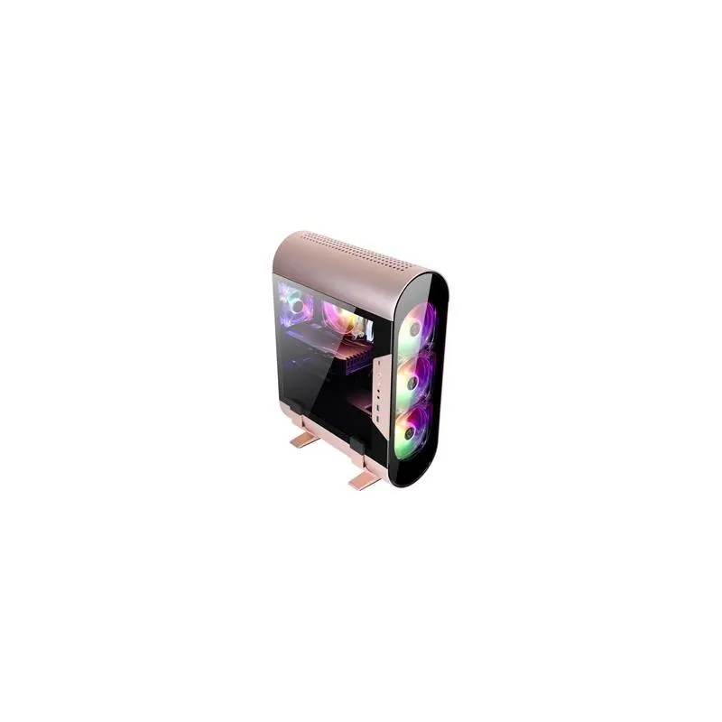 Caja Minitorre Gaming Abkoncore Aluminium Al300m Rose Gold Cristal Templado 3X120mm Sync A