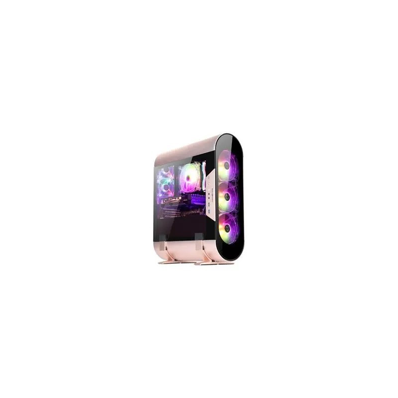 Acostumbrados a ver las típicas cajas gaming de líneas rectas, colores opacos y corte tecnológico. Abkoncore nos sorprende con esta sutil caja con carcasas fabricada en aluminio y paneles laterales de cristal templado , bordes redondeados, y un color rosa metalizado que le aporta un toque futurista y desenfadado.