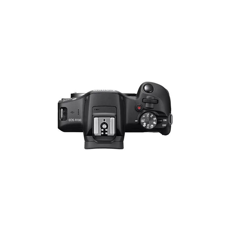 Canon EOS R100 + RF-S 18-45mm F4.5-6.3 IS STM + RF-S 55-200mm F5-7.1 IS STM Kit. Tipo de cámara: MILC, Megapixeles: 24,1 MP, Tipo de sensor: CMOS, Máxima resolución de imagen: 6000 x 4000 Pixeles. Sensibilidad ISO (max): 25600. Intervalo de longitud focal: 18 - 45 mm. Velocidad máxima del obturador: 1/4000 s. Wifi. Tipo HD: 4K Ultra HD, Máxima resolución de video: 3840 x 2160 Pixeles. Diagonal de la pantalla: 7,62 cm (3"). tipo de visor de imágen: Electrónico. Peso: 309 g. Color del producto: Negro